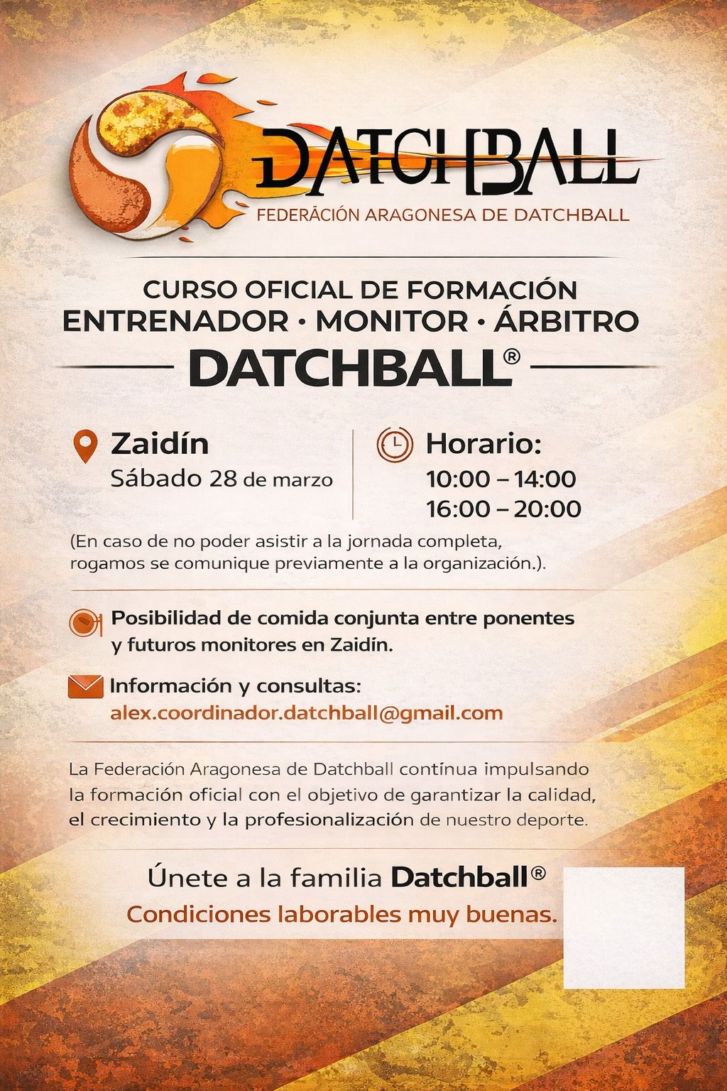 INSCRIPCIÓN AL CURSO DE FORMACIÓN DE DATCHBALL: 28 de FEBRERO (GUADALAJARA) y al CURSO DEL 28 DE MARZO EN ZAIDÍN (HUESCA)